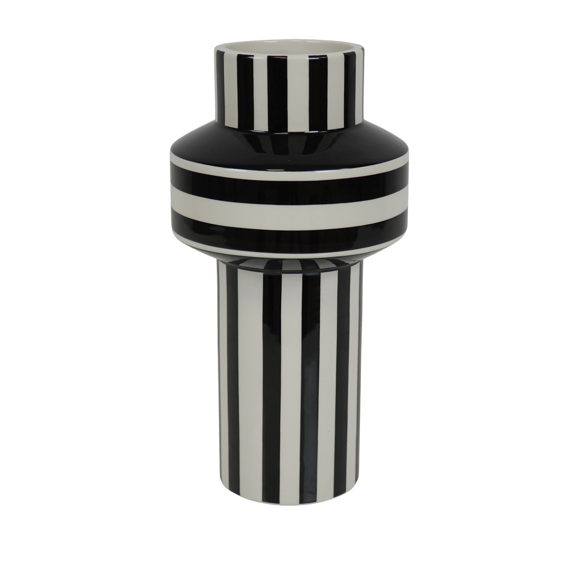 Vaas - Bretonse Streep - Keramiek - Zwart/Wit - 13x13x25cm