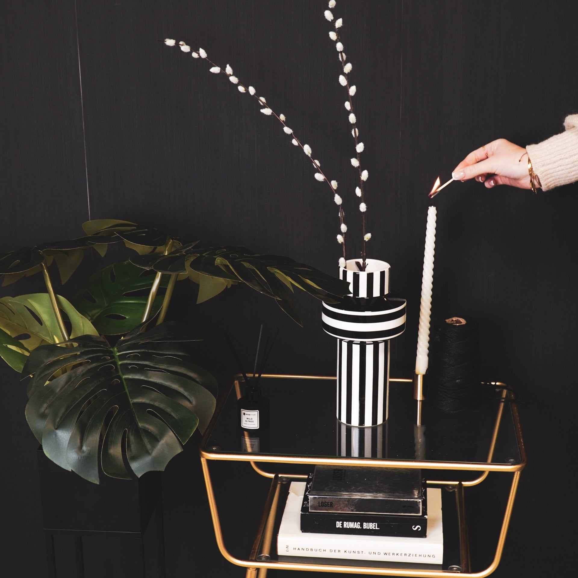 Styling tip: Zonder bloemen staat deze zwart witte vaas ook prachtig, dus zoek maar gewoon een mooi plekje uit.