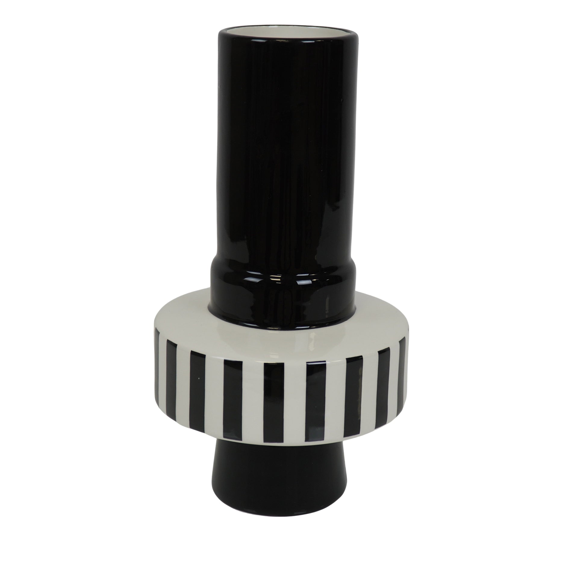 Vaas - Bretonse Streep - Keramiek - Zwart/Wit - 14x14x26 cm