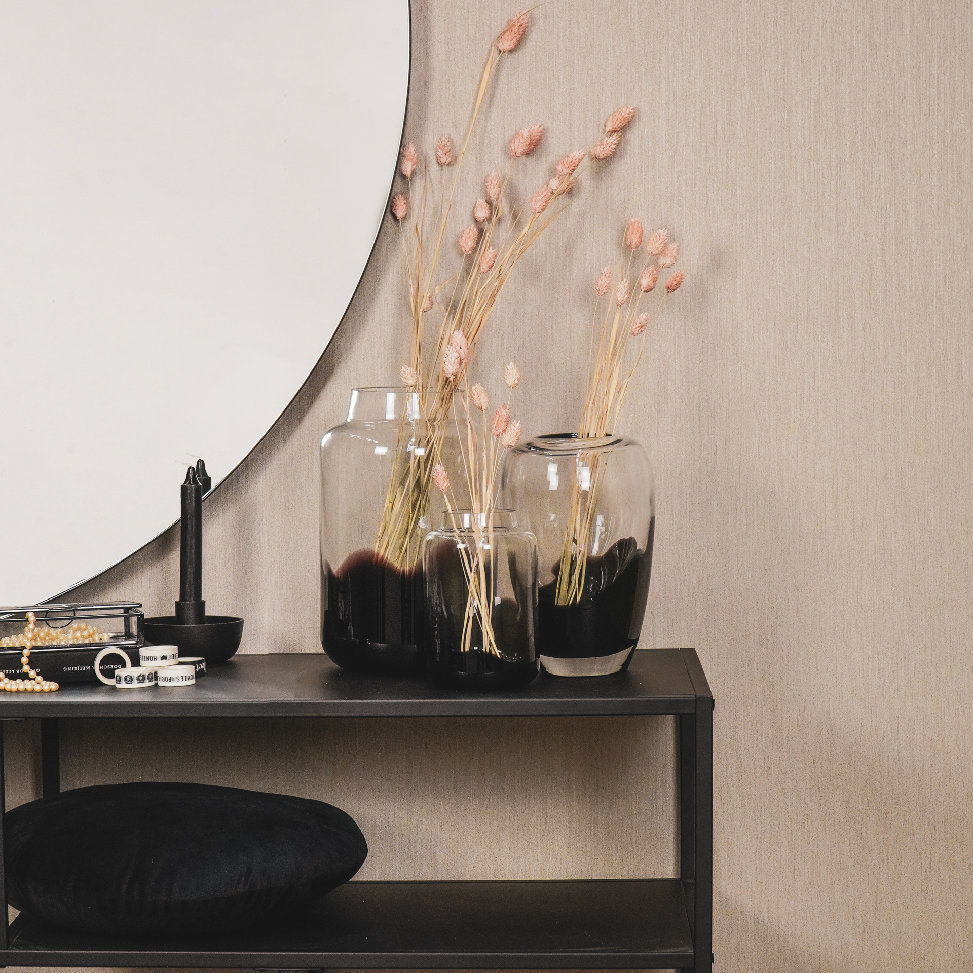 VASE IT! Vazen heb je nooit genoeg. Deze glazen vaas met dip dye zwarte bodem heeft een handig en gangbaar formaat voor vele bloemen en veldboeketten. Het is echt een must have vaas voor veldboeketten.
