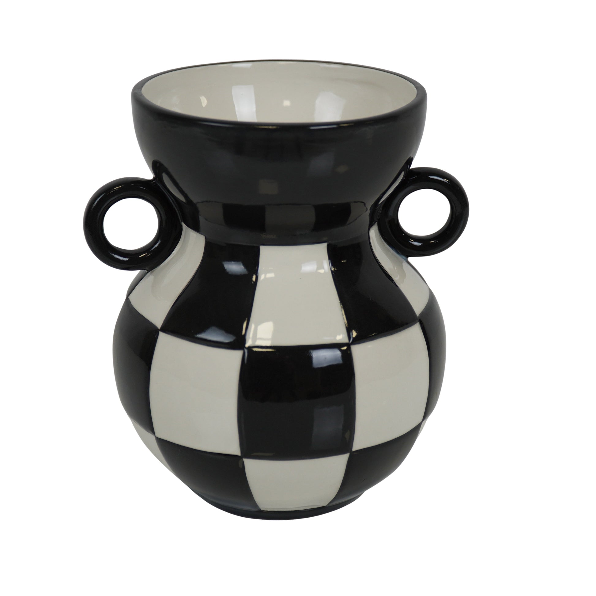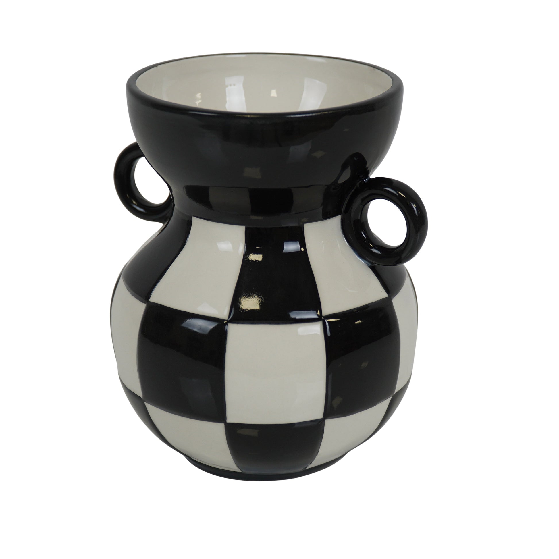 VASE IT! Vazen heb je nooit genoeg en zeker niet in deze mooie vorm. Deze geruite kan / vaas is in de Romeinse stijl en vrolijkt de boel thuis op!! Zoek je een mooie zwart wit vaas met een bijzondere vorm, zoek niet verder!
