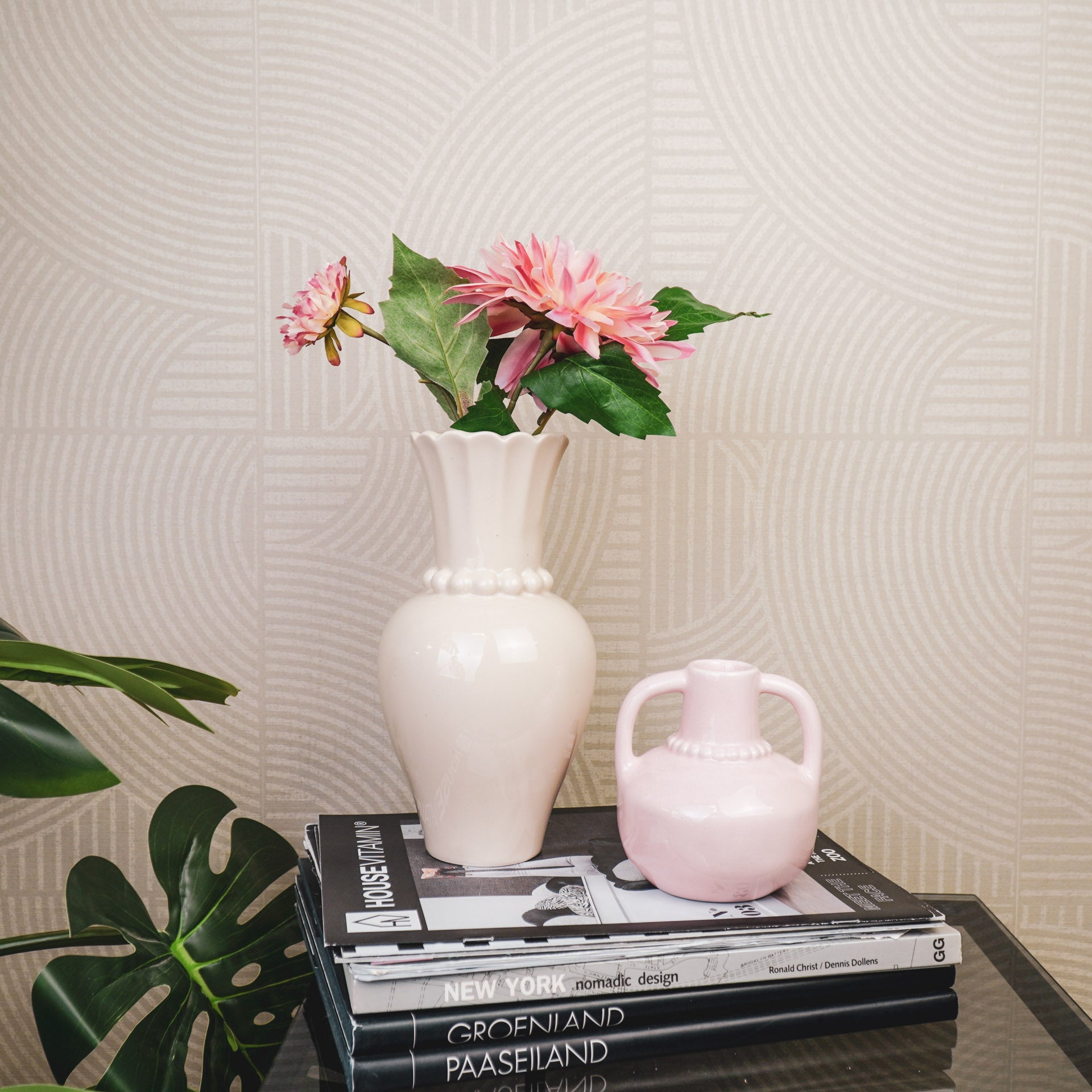 Styling tip: Het lichtroze kruikvaasje staat ook leuk gecombineerd op een dienblad met bijvoorbeeld andere vaasjes en kaarshouders.