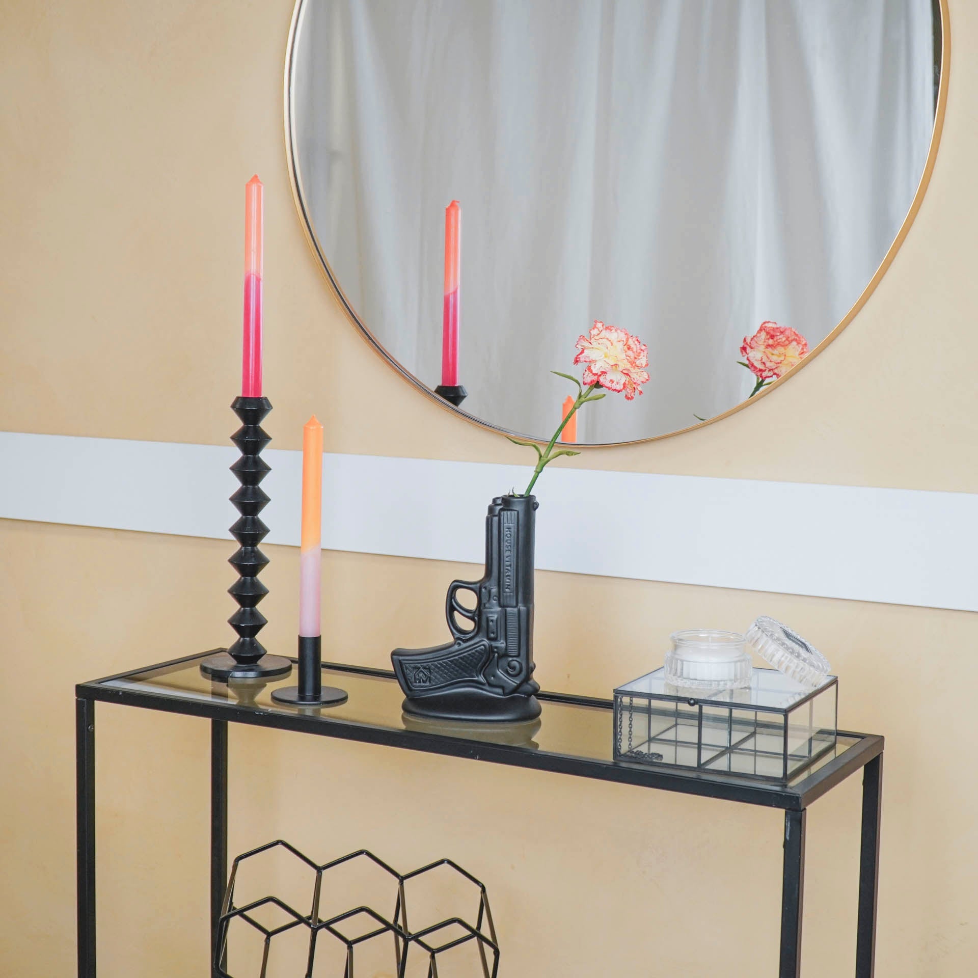 Styling tip: Ook zonder bloemen staat de pistool vaas leuk, zet hem daar neer waar nog iets stoers nodig is.