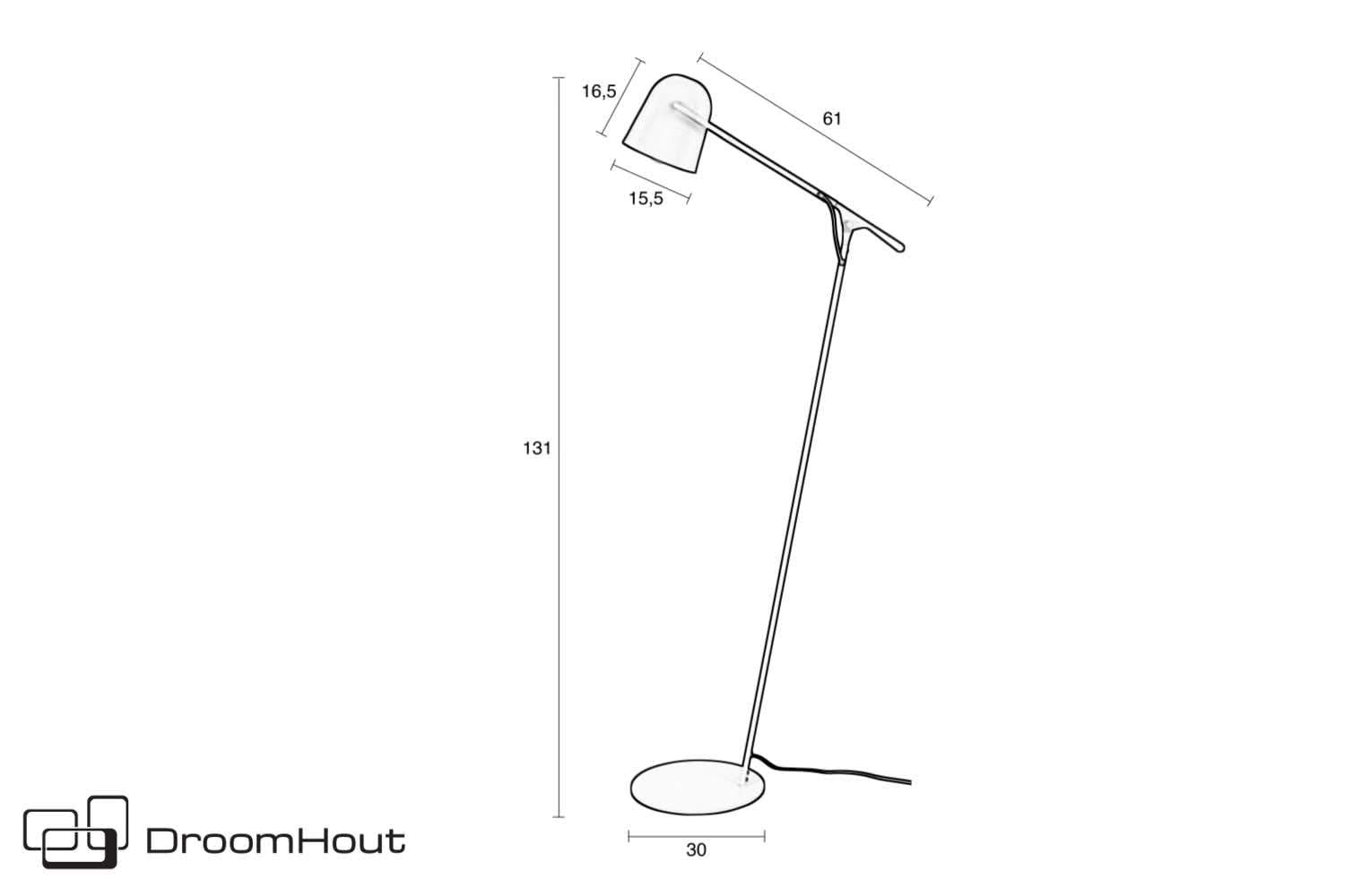 Deze Lau vloerlamp van Zuiver is mooi slank. Door het slanke model heeft de Lau vloerlamp niet veel ruimte nodig. De ijzeren kap, body en voet zijn gelakt. Je hebt de keuze uit 3 kleuren. Kies je voor het stoere all black. Of past het natuurlijke dessert sage of brown rice meer in jou interieur. De kap heeft een afmeting van Ø 15,5 × 16,5 cm en de afmeting van de body is 52 × 126,5 cm (BxH). Dat maakt de totaalafmeting van de Lau vloerlamp 61 × 131 cm (BxH). De lamp is geschikt voor een lichtbron E27, max. 40 watt gewone lamp. Naast een mooie platte mee gelakte voet is de lamp voorzien van een 200 cm zwarte katoenen kabel met aan / uit voetschakelaar.