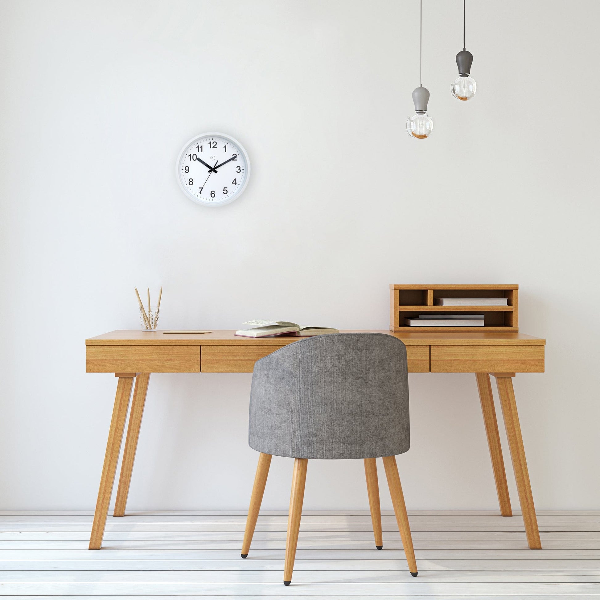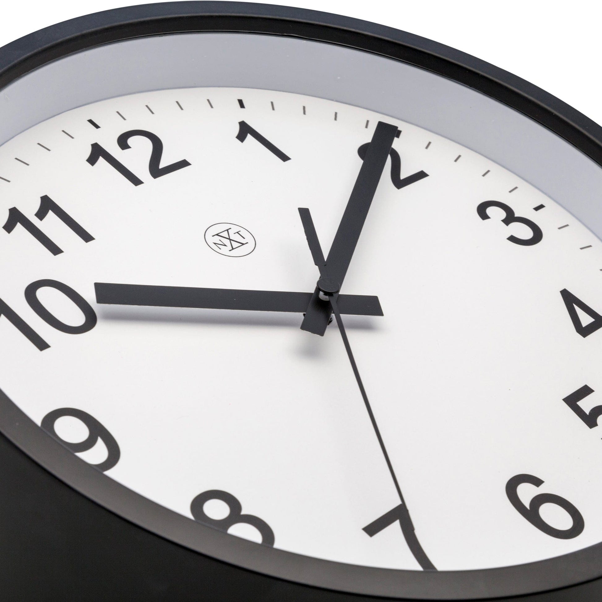 The nXt Robust silent wall clock (25.5cm) combines minimalist sophistication with functionality. It is a simple design with black Arabic numbers on a white dial and a white case. This clock uses 1 x AA battery (not included).