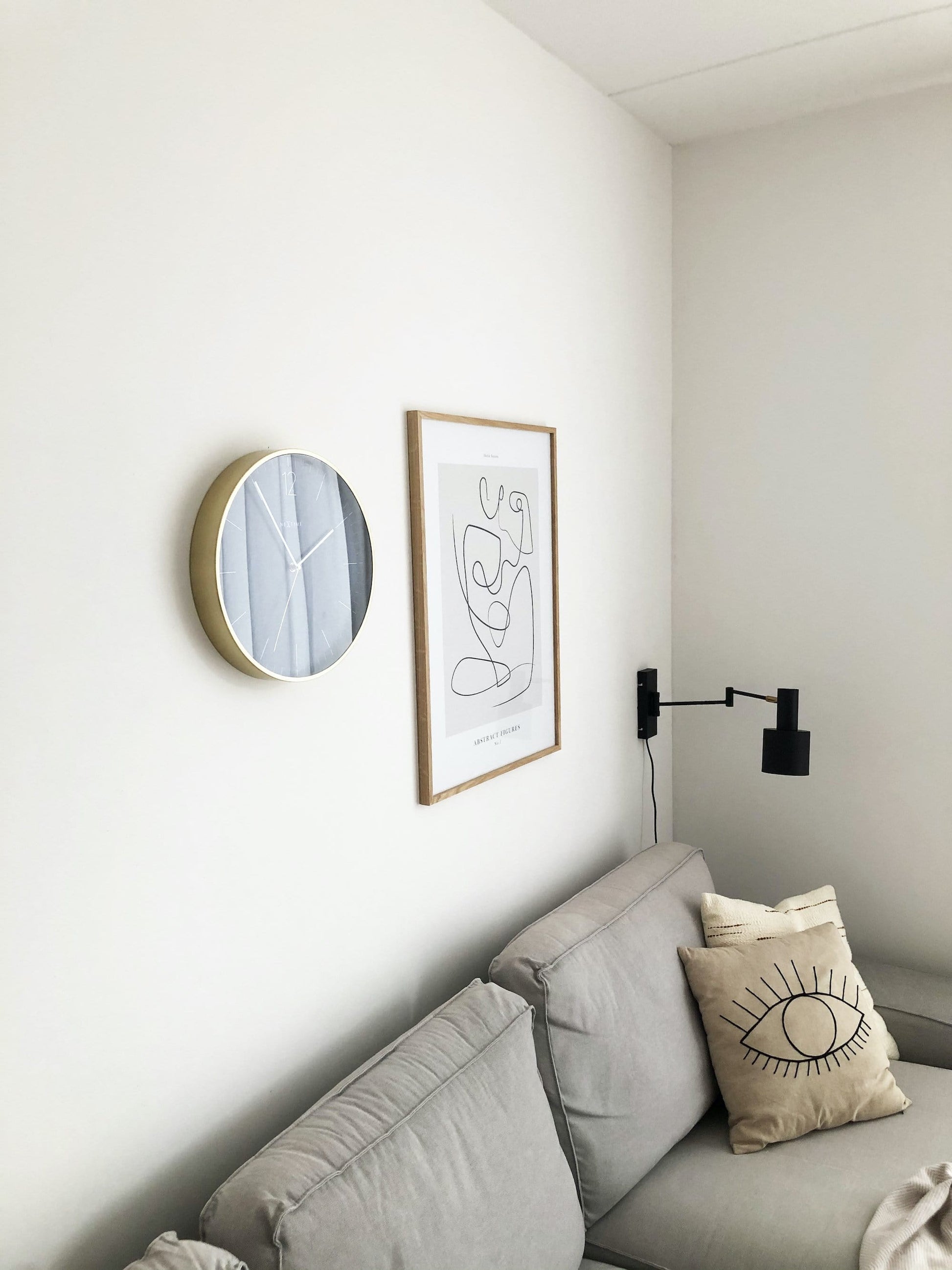 The NeXtime "Essential Gold" is a round (Ø34cm) wall clock. The clock has a golden case made of brushed aluminium, a dial with a stripe index and a number at 12 o'clock. The thin hands and second hand gives this clock a lovely chic and stylish design that fits in many interiors. This clock is silent and works on 1 AA battery (not included).