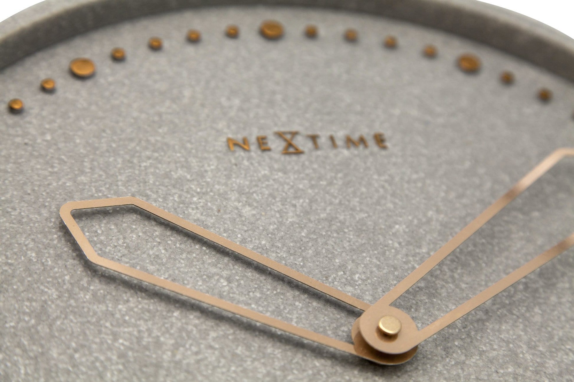 The NeXtime "Cross" wall clock is designed by Chantal Drenthe and Jette Scheib. The strong and fascinating contrast between cold rough concrete and the shiny rose gold element makes this clock a real eye-catcher in a trendy and modern home. This clock is silent and runs on 1 AA battery (not included).