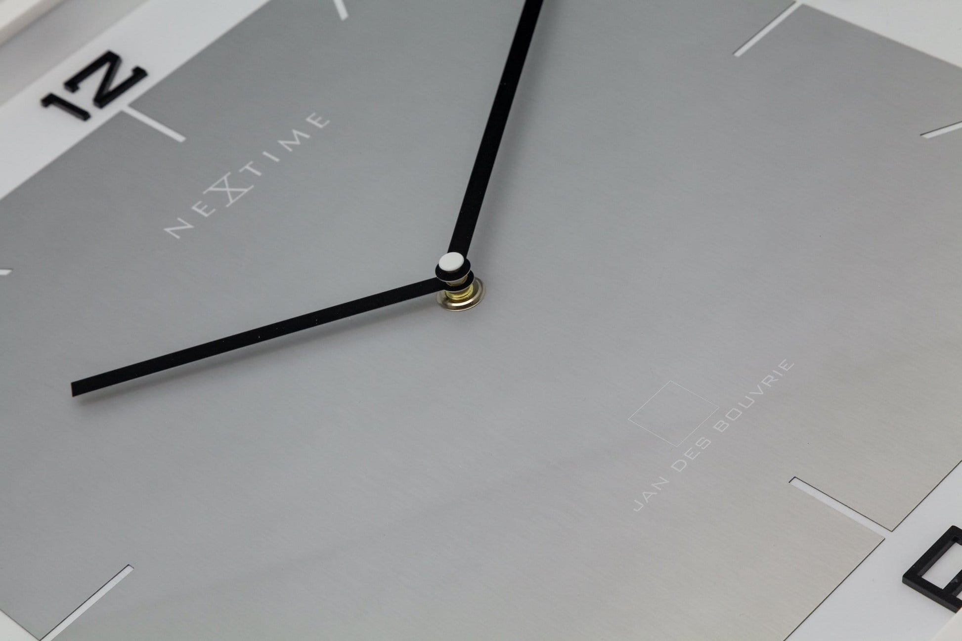 The NeXtime "Square Wall" is a square wall clock (40 x 40 x 4 cm) designed by Jan des Bouvrie. This white clock with RVS has a wooden case that is finished with piano lacque . It has the typical Jan des Bouvrie signature and gives a modern touch to your room. This clock is silent and runs on 1x AA battery (not included).