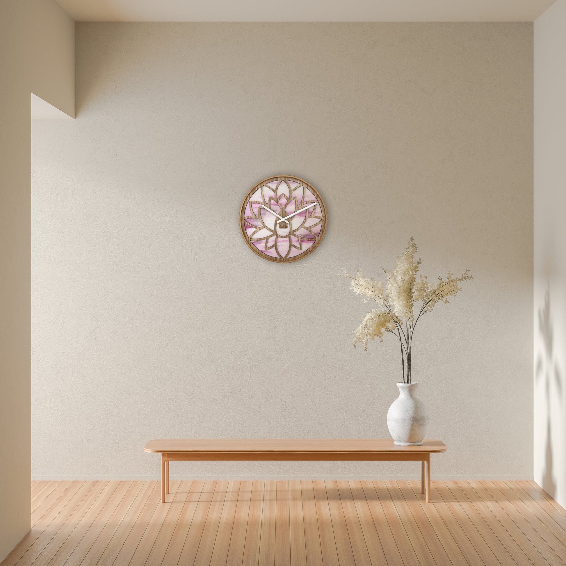 Wall clock 40cm - Silent - Pink - Wood - "Lotus"