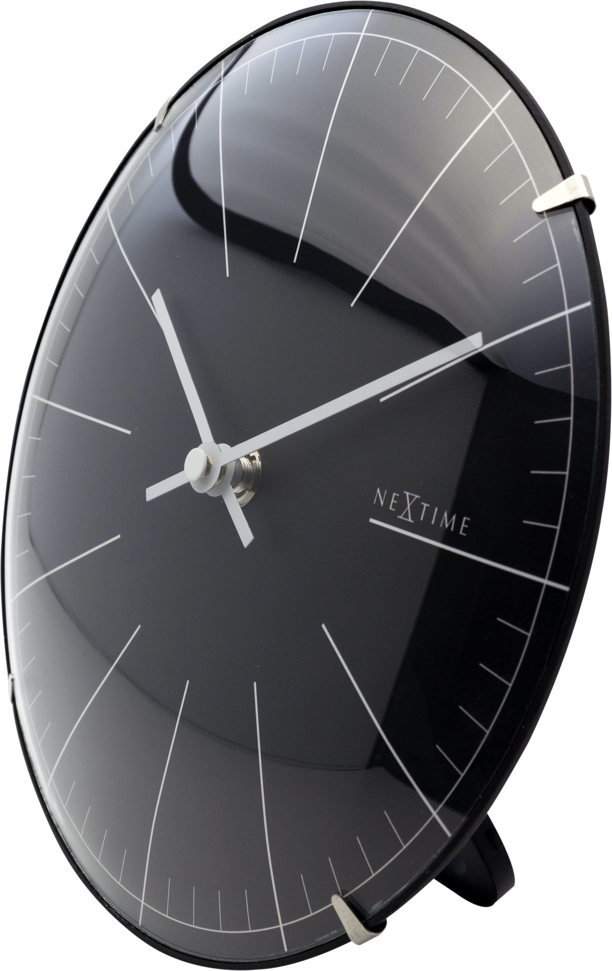 The NeXtime "Big Stripe Mini Dome" is a table clock and wall clock at the same time due to the standard that is included. This clock is made of dome shaped glass and has a trendy and classic design. This clock is silent and runs on 1 AA battery (not included).