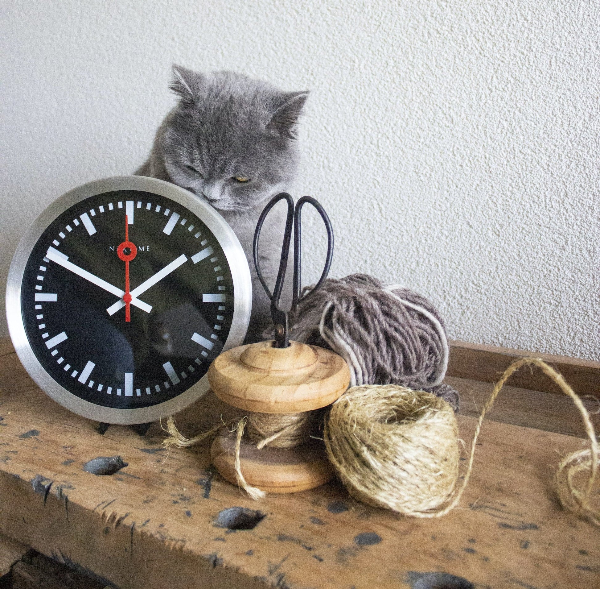 Wall clock/Table clock - Black - Aluminum - 'Station Stripe'