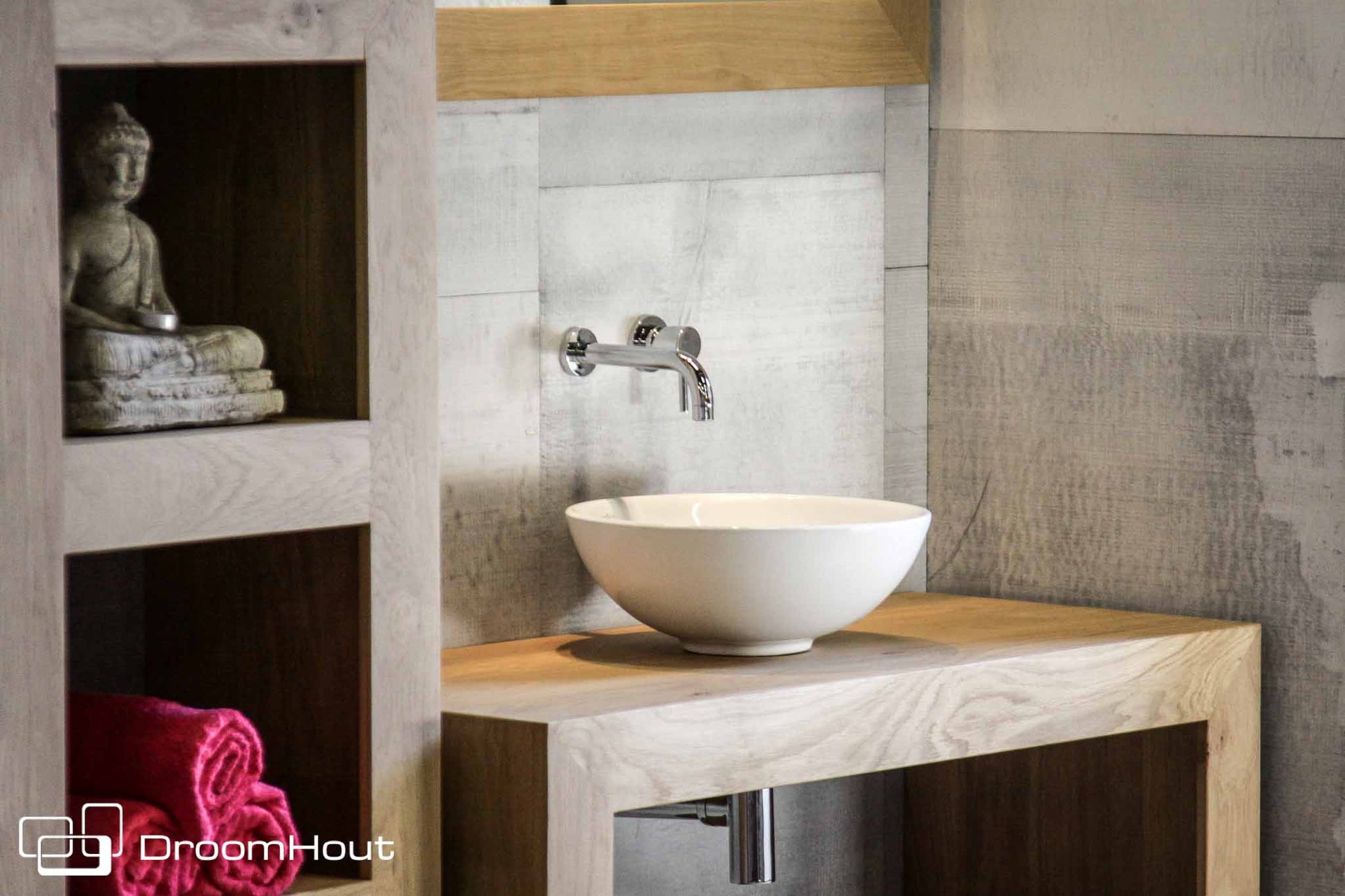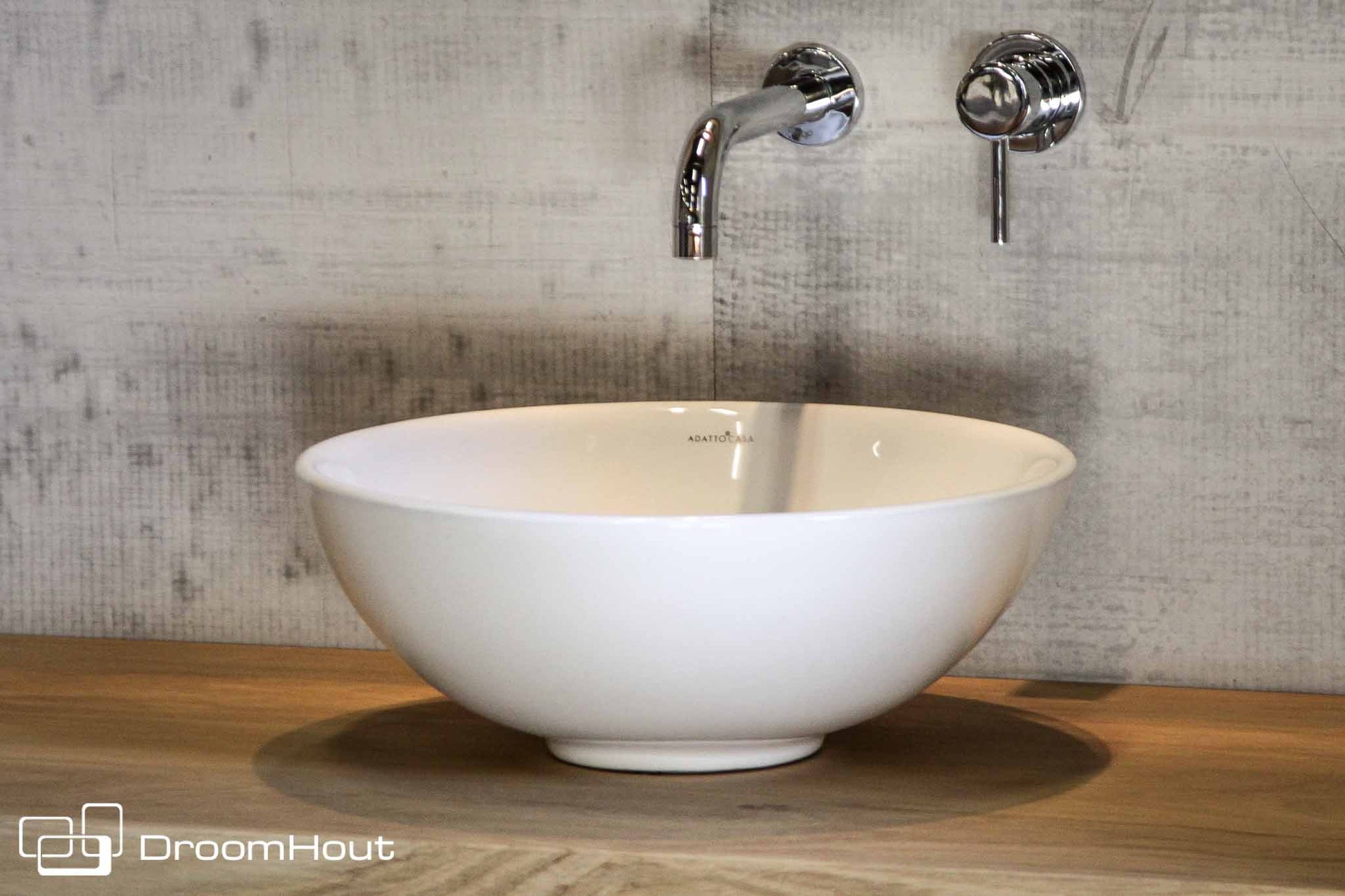 De waskom Venere past mooi op het badkamermeubel Serenity. Kies een kraan die uit de muur komt of een staande kraan zoals de kraan Pure, beiden staan super bij de waskom Venere.