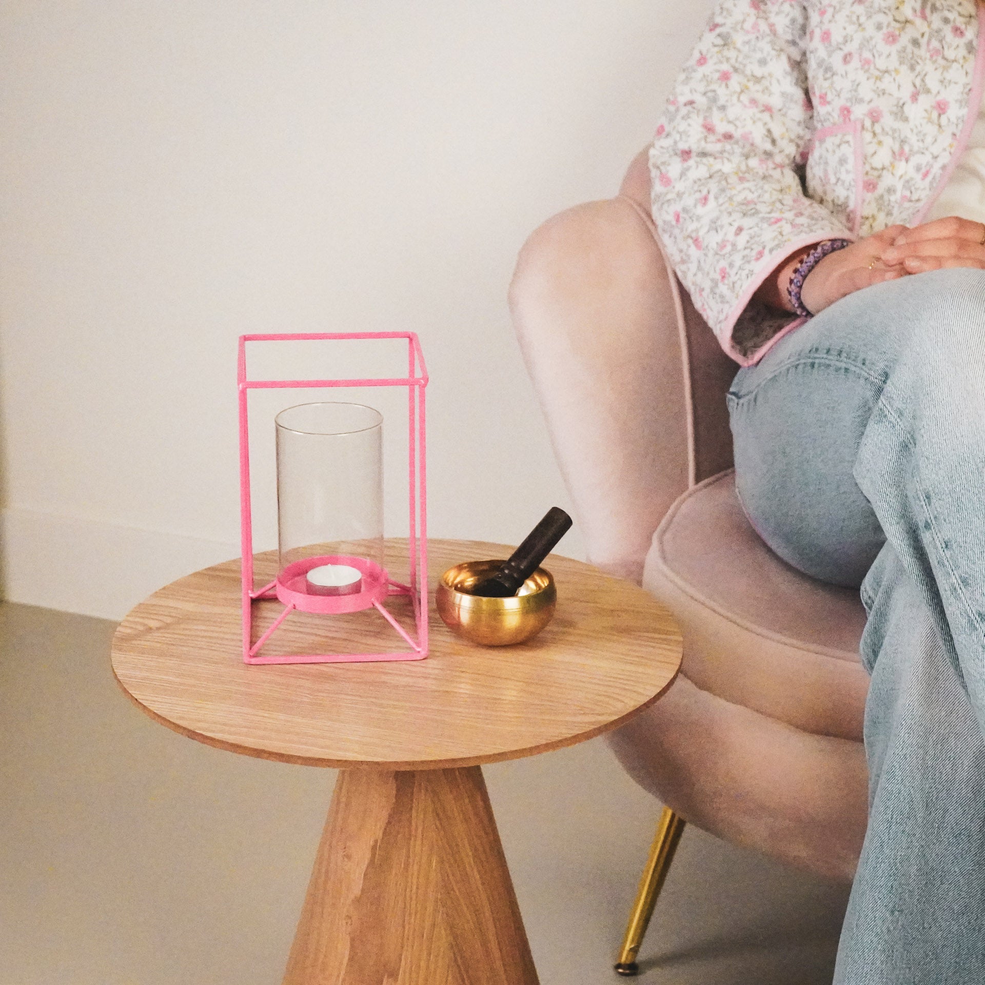 Styling tip: Plaats het glazen windlicht op een stapeltje boeken om meer hoogte te creëeren.